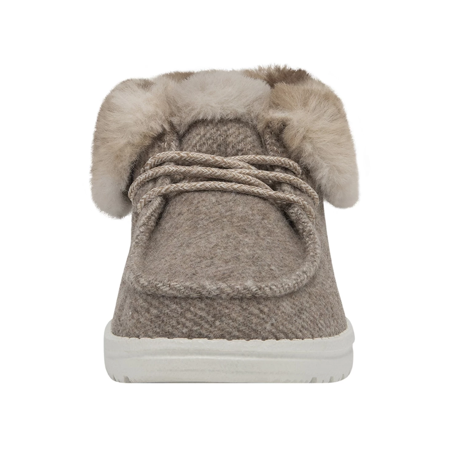 This coffee dye style Britt from Hey Dude is a fan favorite for good reason, with its cozy feel and cute looks! This style features the popular elastic laces that are so convenient and fast. You will stay warm and comfortable with the faux fur collar on the ankle and the cushioned insole.Â