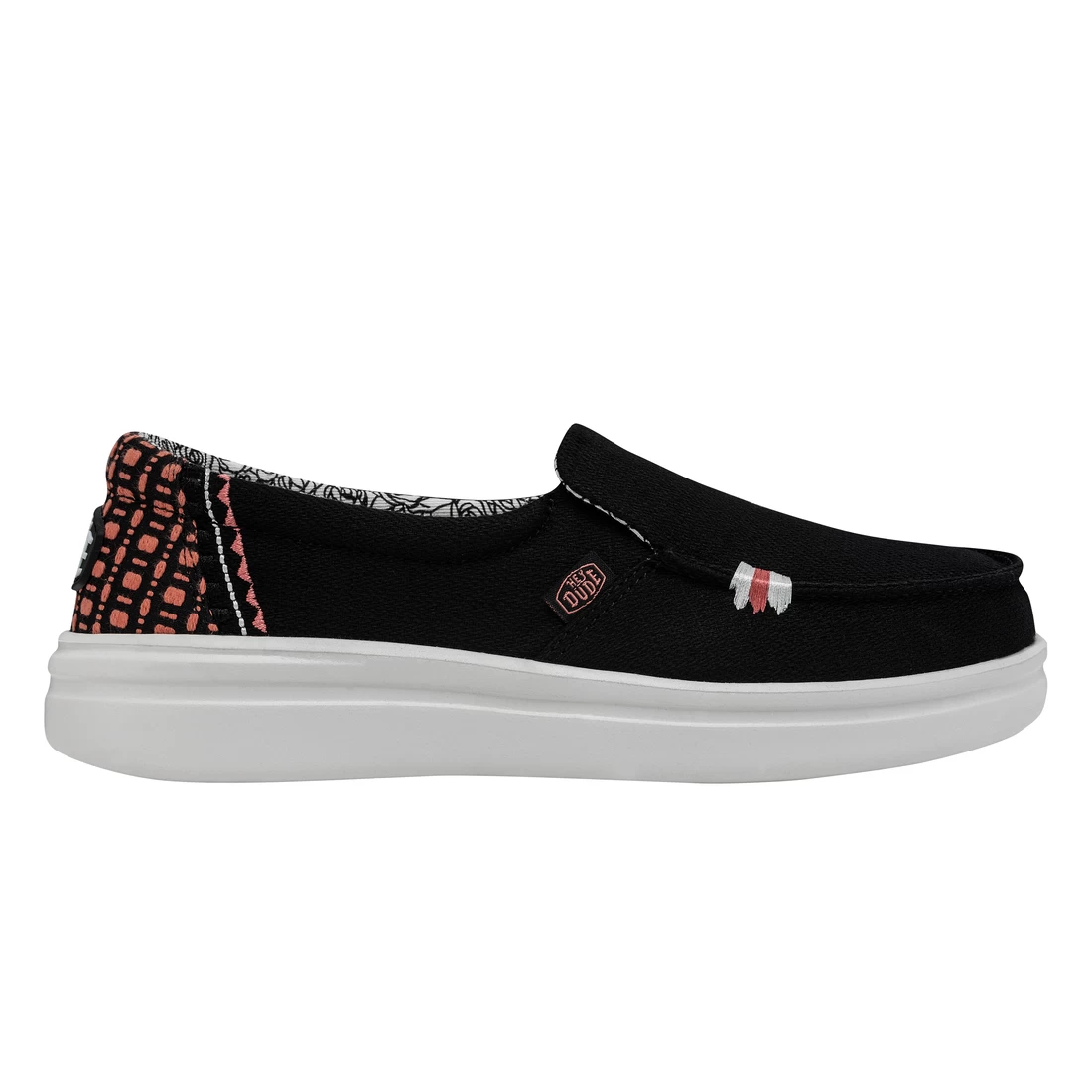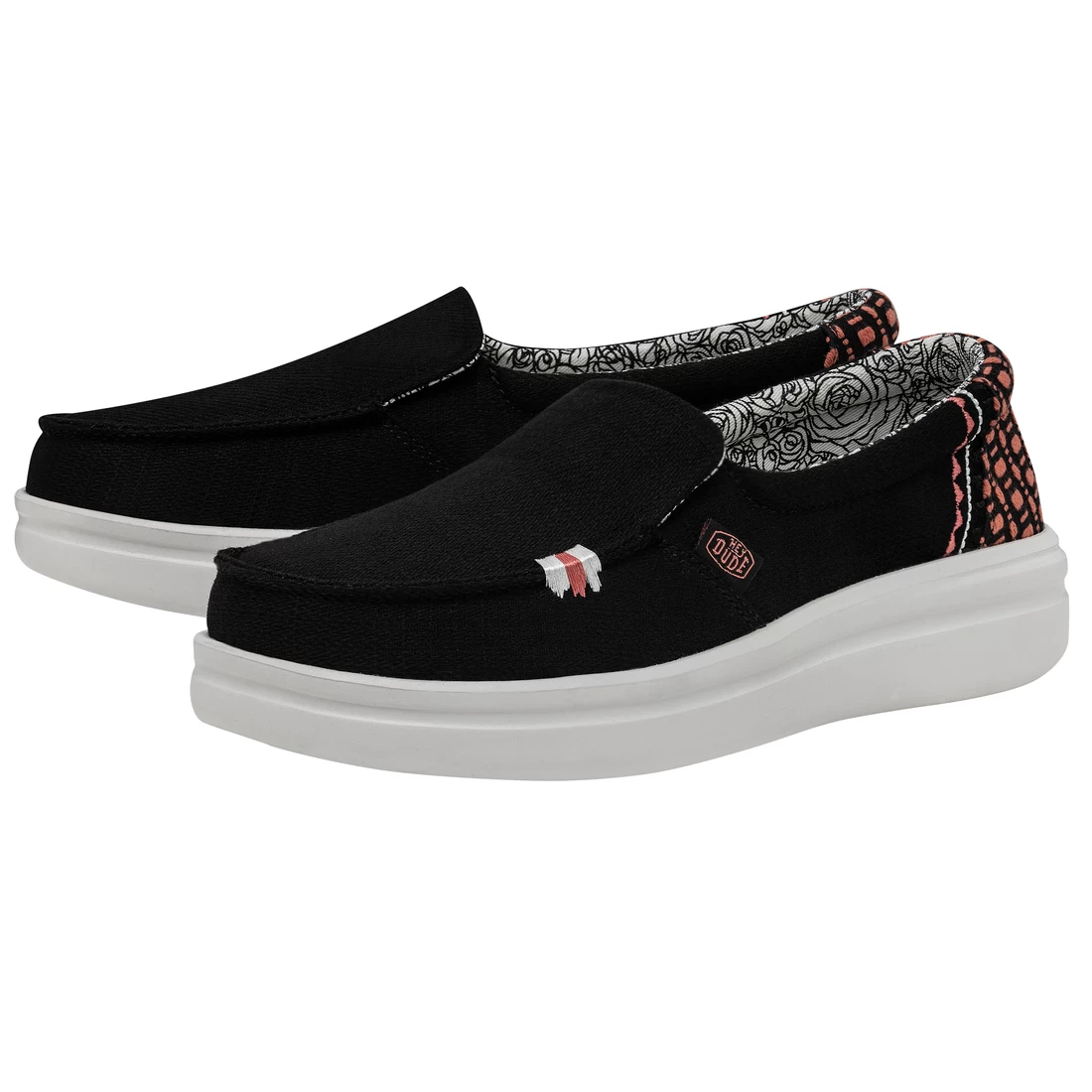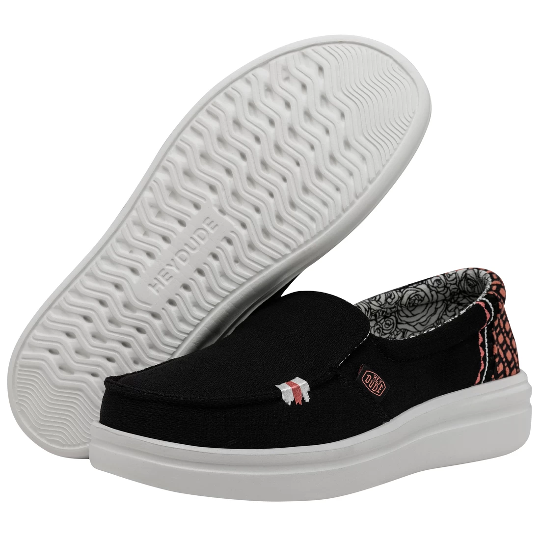 These super cute Misty Rise Hey Dudes feature the loafer style. Created with a durable woven textile upper and detailed with a boho-cool stitching, giving plain cotton a run for its money. An airy foam insole adds an extra layer of cushion while finished off on an ultralight outsole.Â