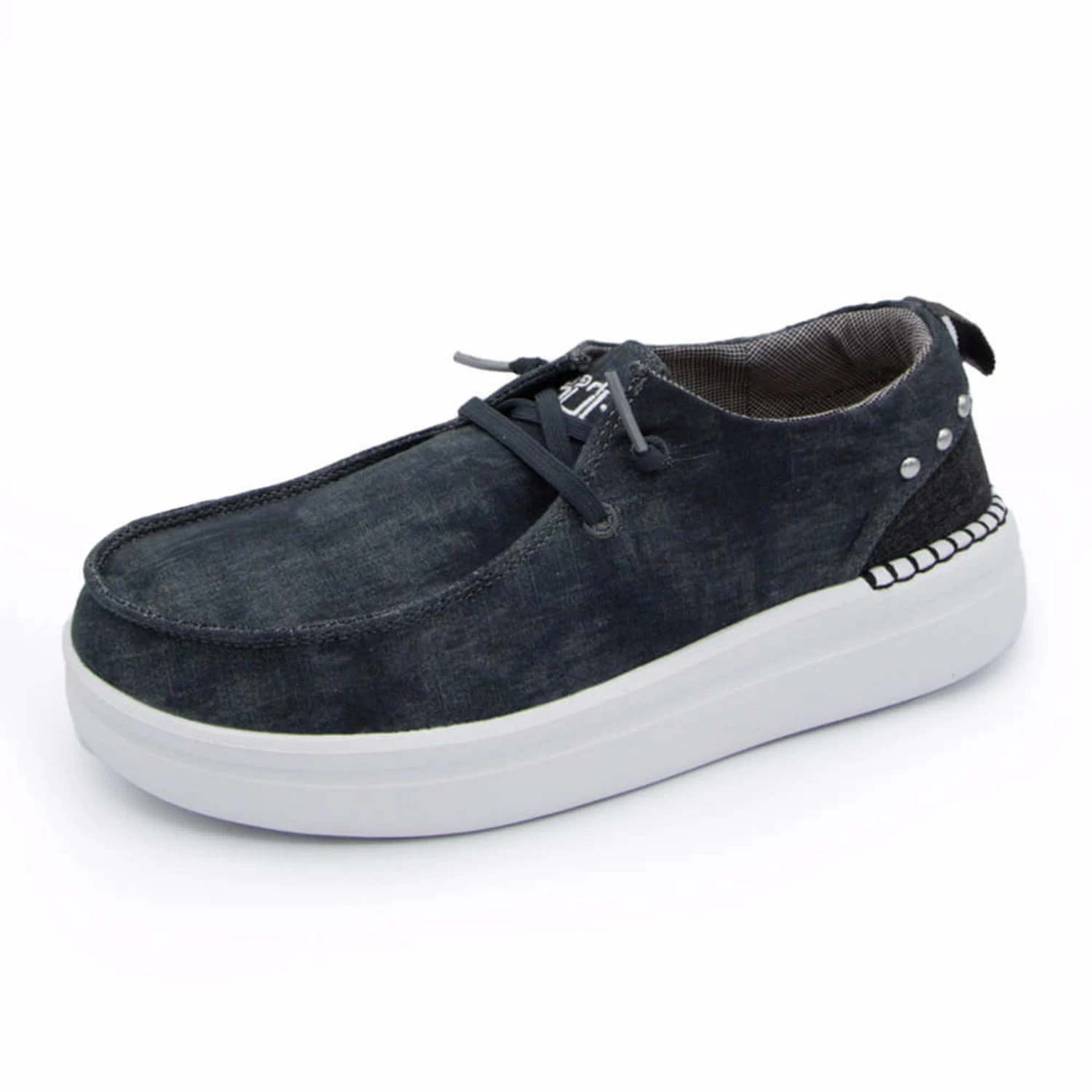 These Hey Dude Shoes Women’s Wendy Rise Platform Shoes in Rivet Onyx Grey bring a little lift to your everyday wardrobe with the platform sole! A cute design featuring a subtle distressed grey color, canvas uppers, and a slight platform these casual women’s shoes are a fun must have. Whatever the occasion, there’s room for these dudes in your life!