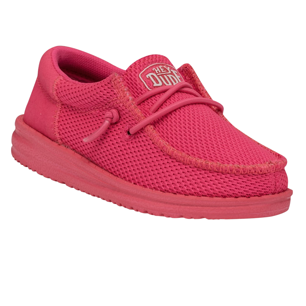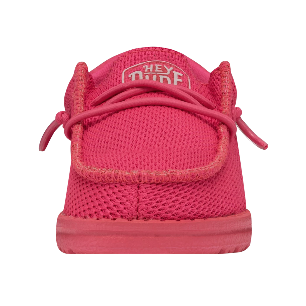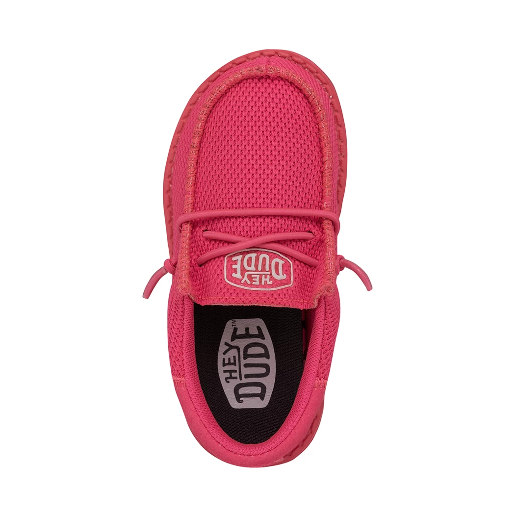 The most fun toddler shoe you will find! The Hey Dude Toddler Mono Electric Pink is made to stand out and simply screams fun.  Stretchy Knit, cushy foam insole, ultralight outsole, means all day comfort without ever lacking style!Â