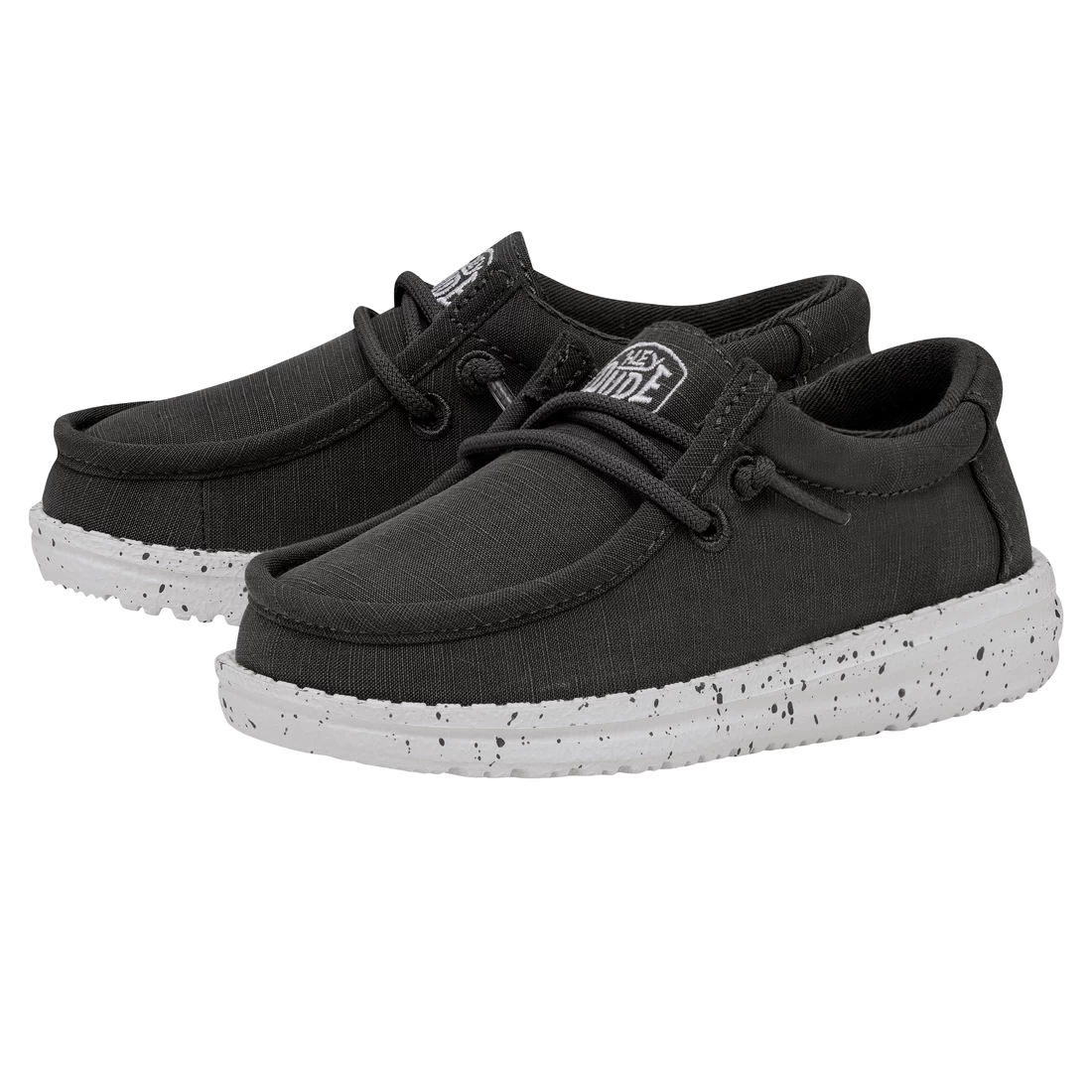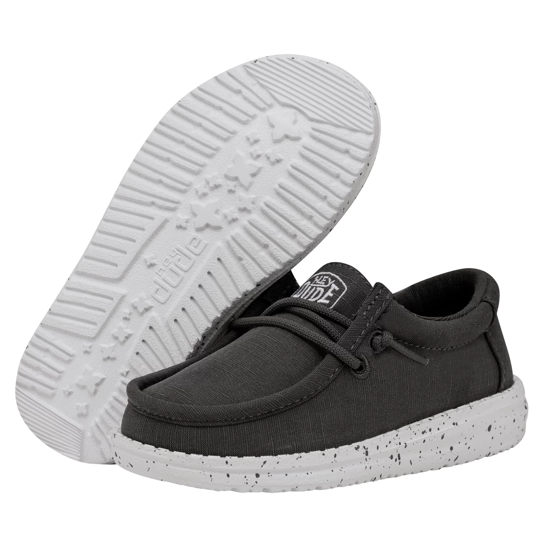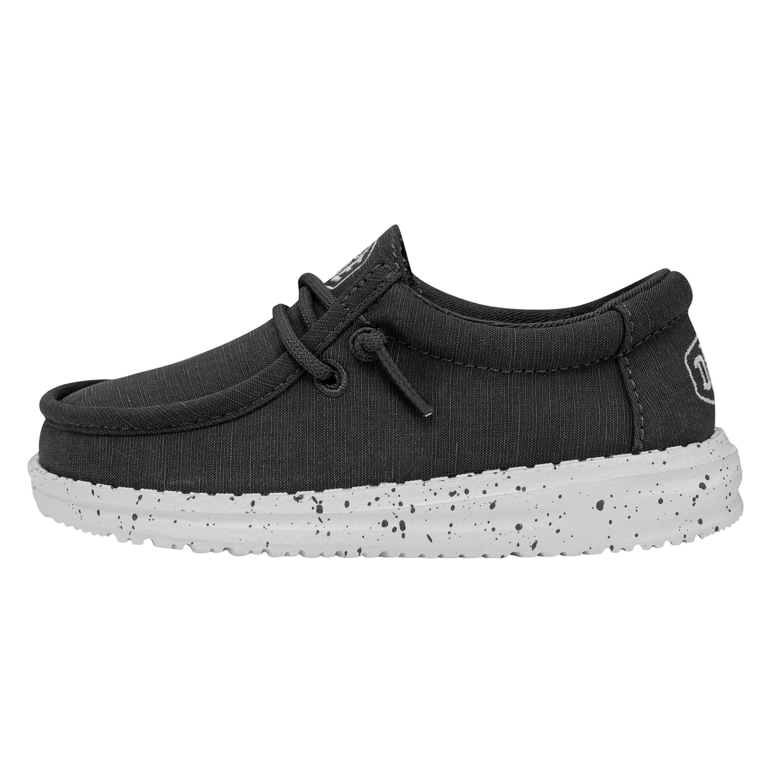 The Wally Toddler Slub Canvas, Dark Grey, is the perfect summer shoe for your little one. A great color for any little one and perfect to wear as a team color to support big bro or big sis’s team! The Wally Toddler Slub Canvas collection has all the tried-and-true construction you know and love, but is is extra lightweight for those little ones.  It features a durable slub-woven upper and lined with soft cotton for durability and comfort. This shoe features an ultralight outsole with no-tie, elastic laces and a cushioned ankle collar for extra support. Made just right for spirited little feet.
