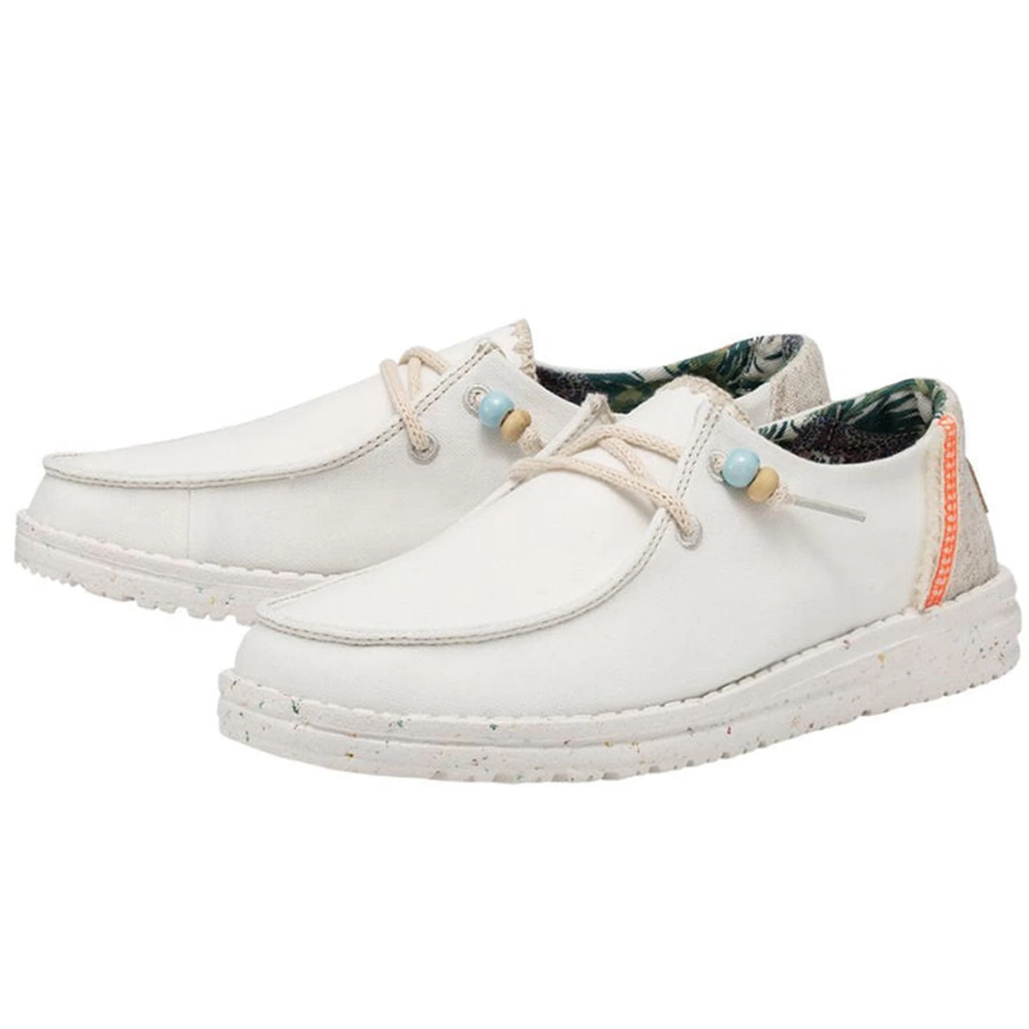 The iconic low-top moc, this time in soft, breathable organic cotton canvas. Heydude patented UltraLIGHT EVA outsole cushions your every step. And the Easy-On elastic lacing system is finished with real wood and ceramic beads.