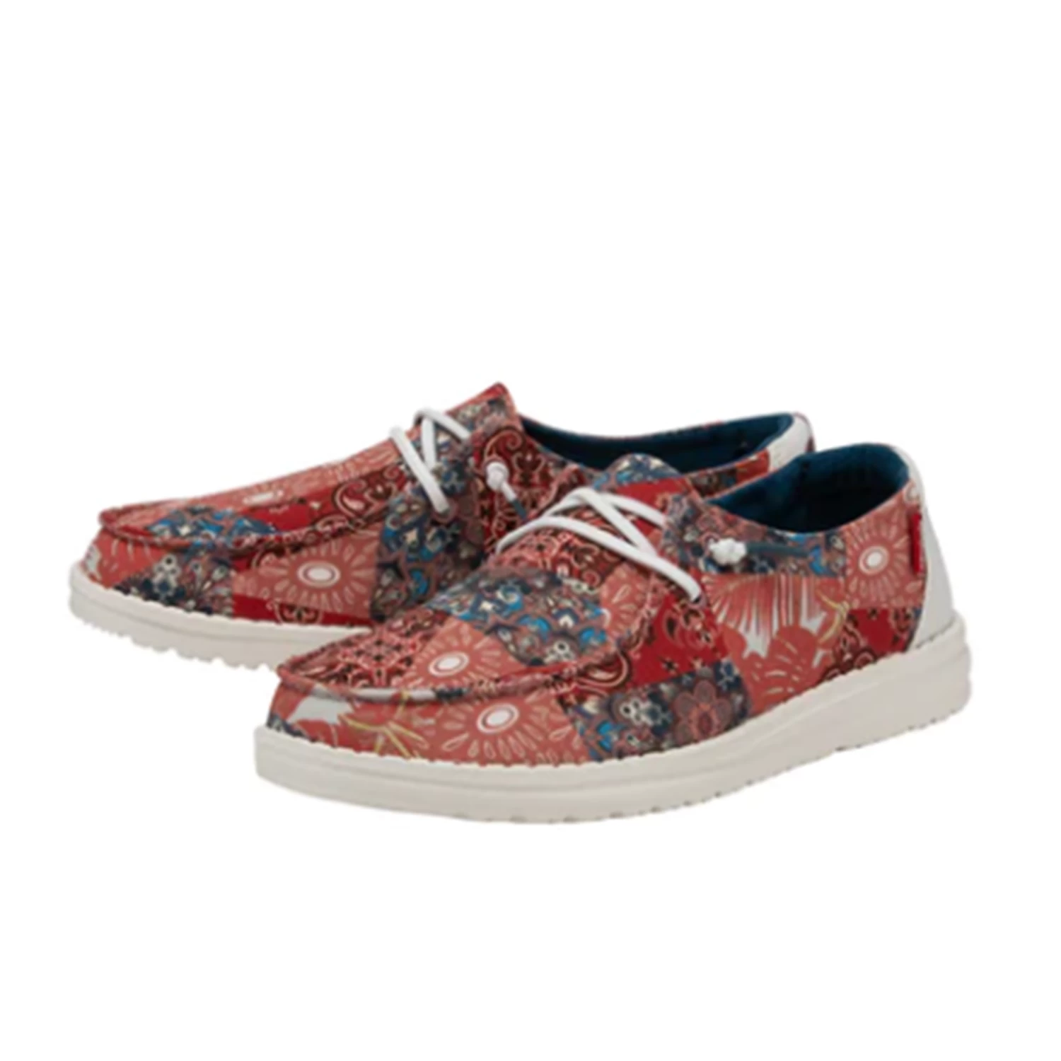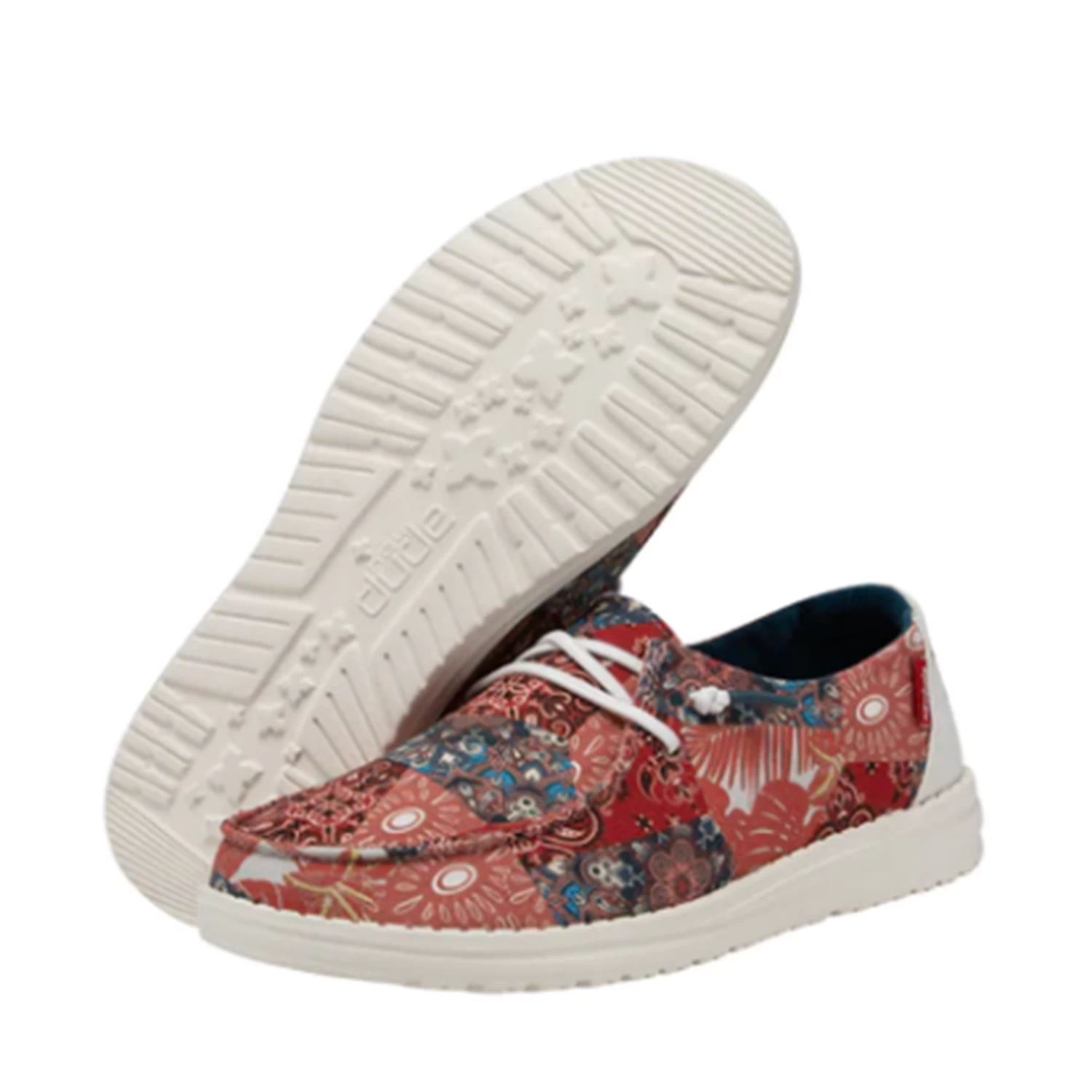 the Hey Dude Wendy Patch Geo Flower features a fun boho style that allows you to step out and stand out all while offering extreme comfort for wherever the road may lead!