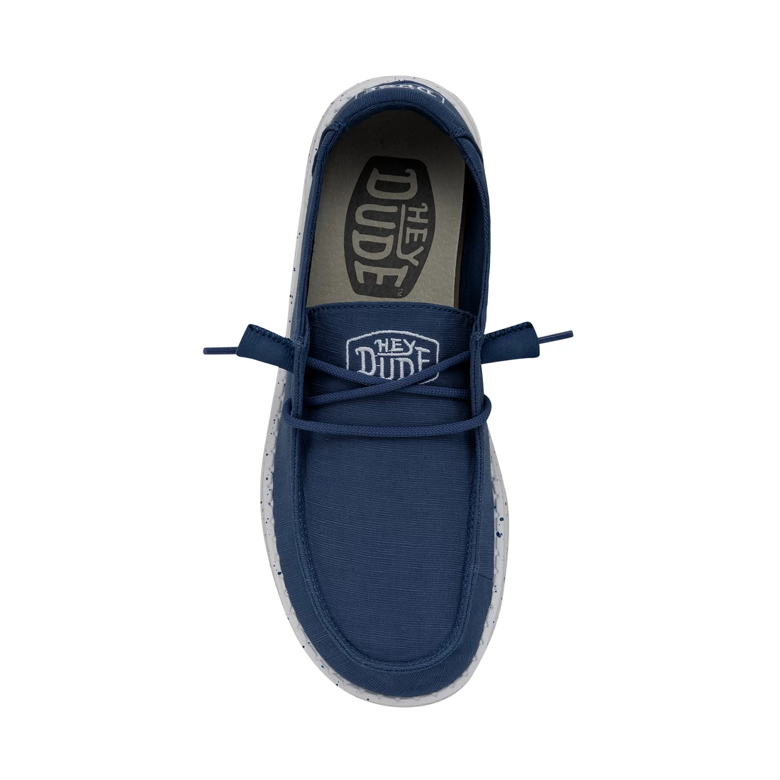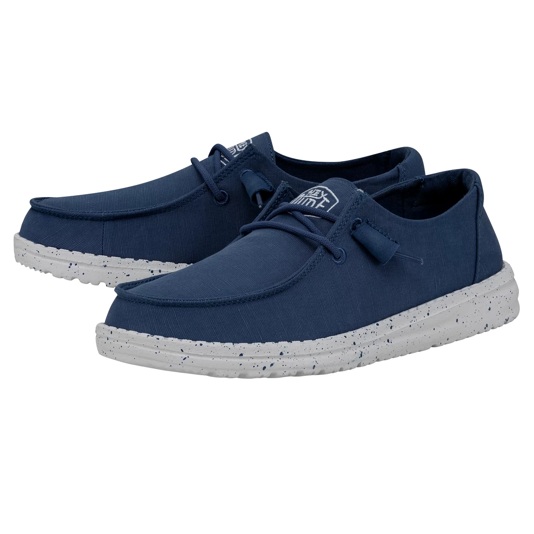 These fun true blue hey dudes will have you reaching for them every chance you get. Features a medium-weight, textile fabric with a vintage look and HEYDUDE durability throughout. Finished off on an ultralight outsole and an easy-on system with no-tie, elastic laces.