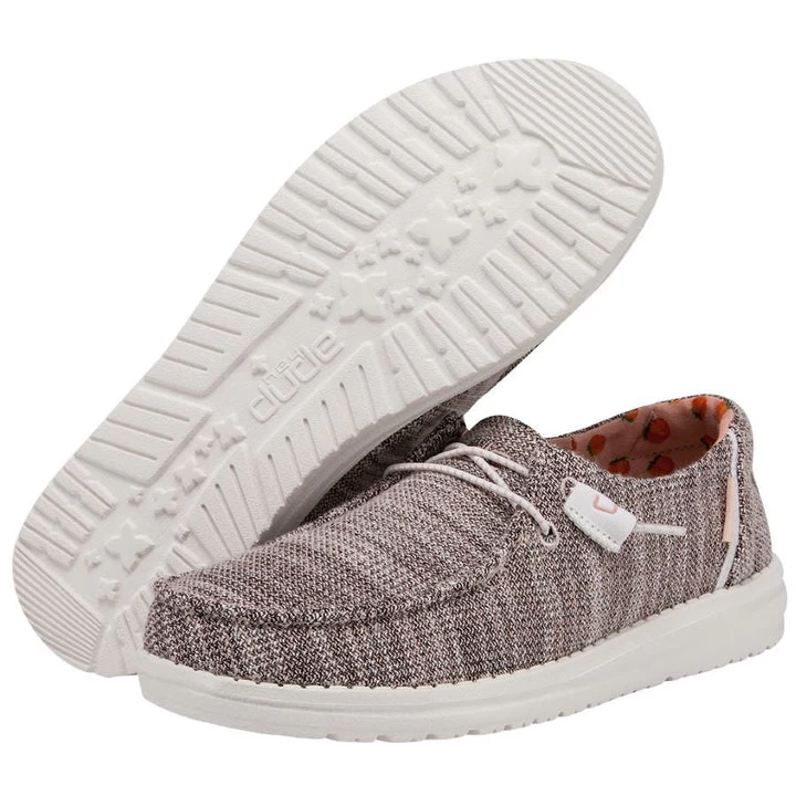 These Wendy Stretch Peach Bud Hey Dude’s are everything you could ask for in a shoe. They are breathable, lightweight, and offer superior comfort and style.Â