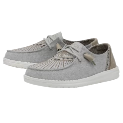The Hey Dude Wendy Western Grey features a boho style that will lead your soul to the wild west! This shoe features Tan on Grey detailing. Made of breathable textile and featuring a soft cotton lining, ultra light outsole, and cushion insole means you can count on all day comfort without sacrificing style!Â