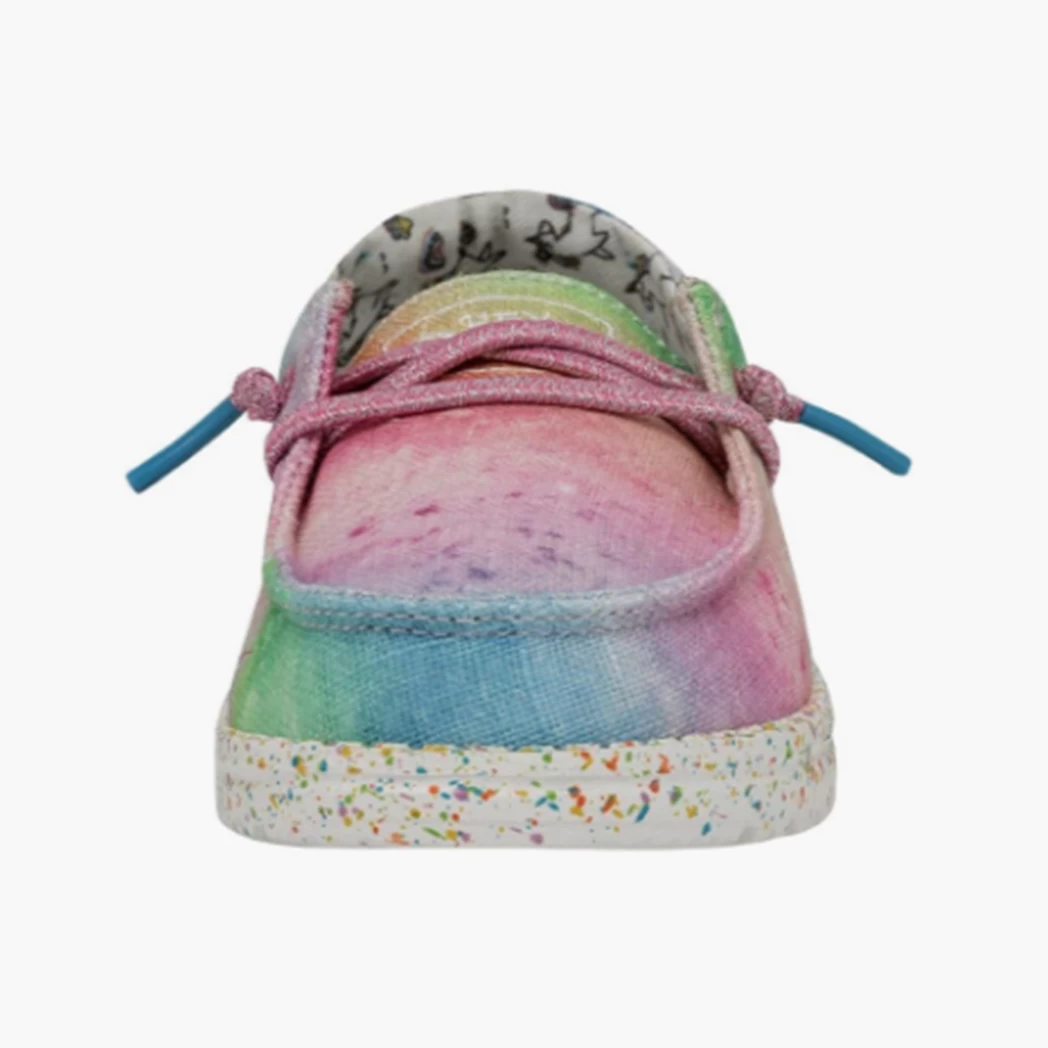 Bring on funtimes and sunshine with the Hey Dude Wendy Youth Dreamer Magic! Fun, bright designs help the imagination soar! A soft, breathable cotton canvas, finished off on an ultralight outsole with elastic laces insure your little one is stylish and comfy!