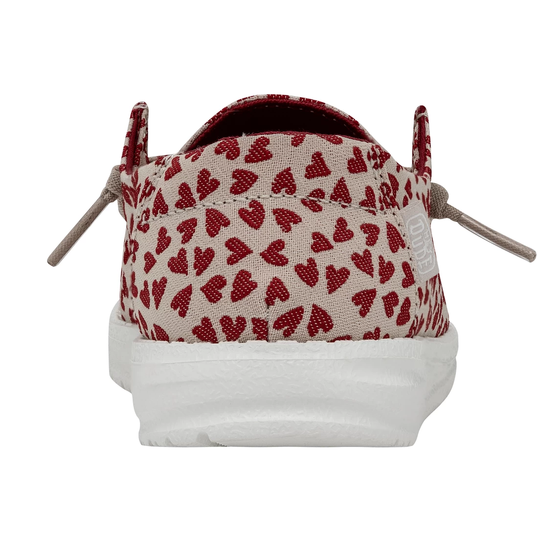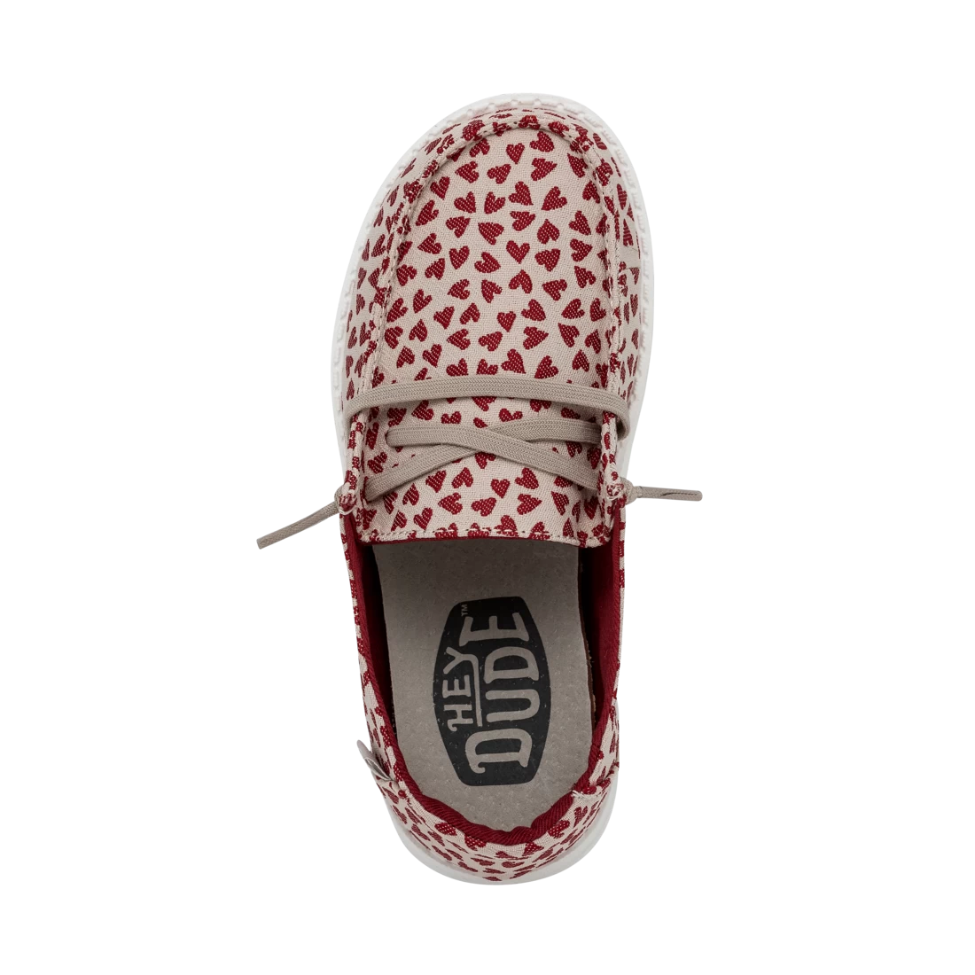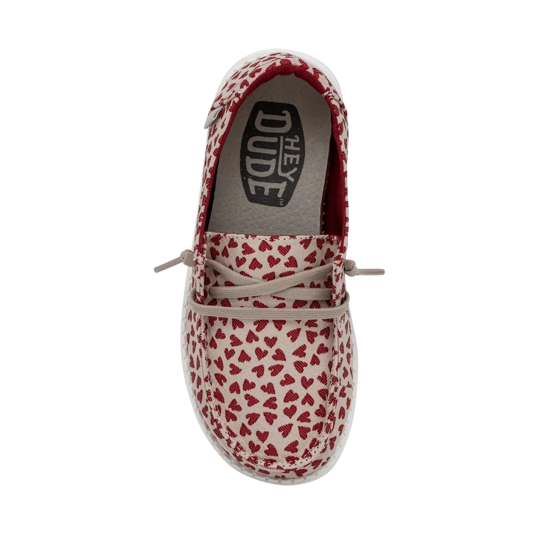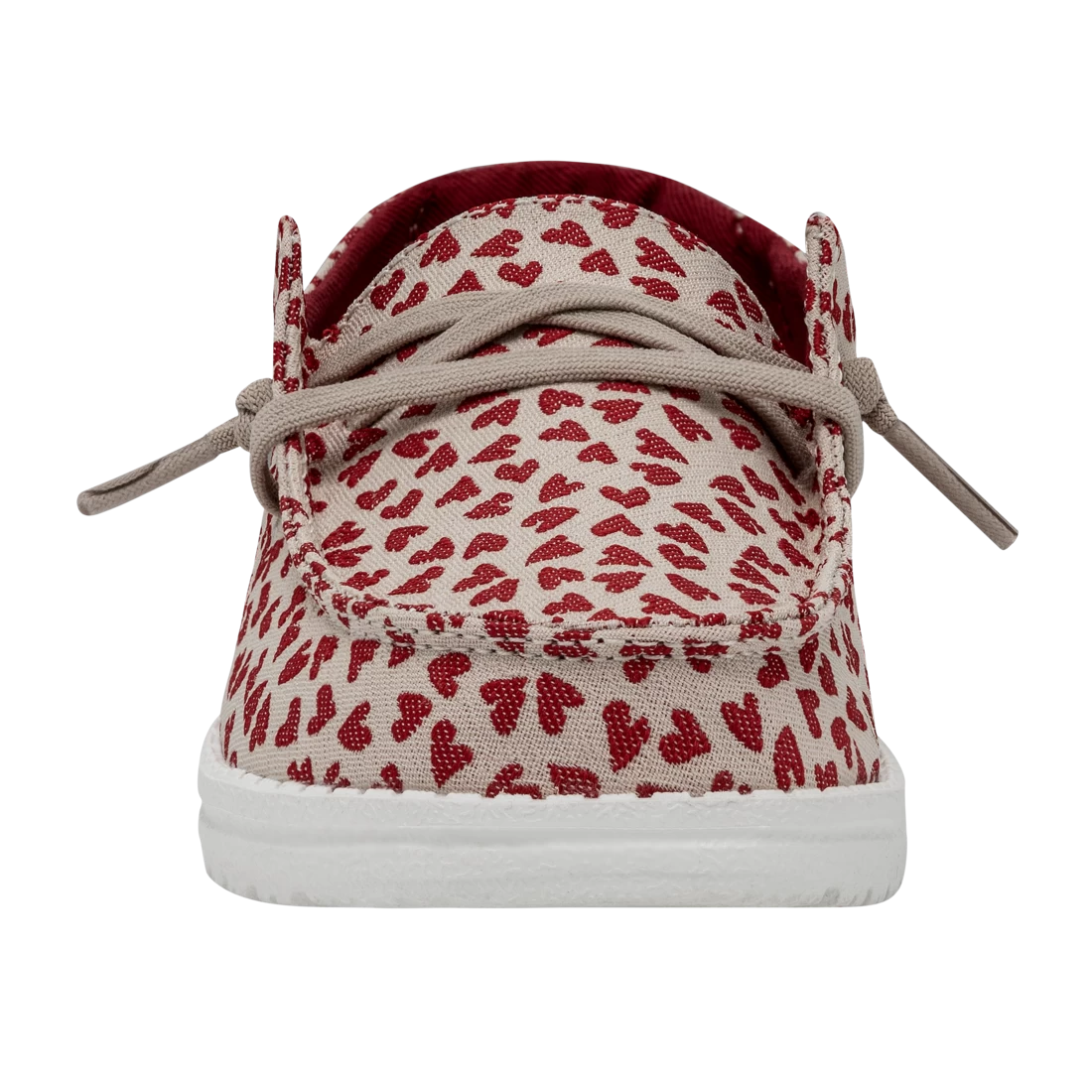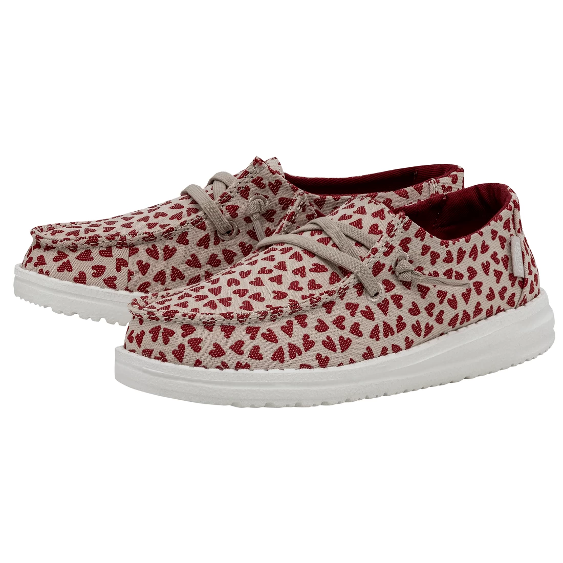 Can we say, WE LOVE THESE HEY DUDES! The Wendy Youth Love Tan, must be the cutest shoe we have seen.  Featuring a polyester spandex upper that’s heavier and more durable than cotton, for what ever your kid throws there way and lined with a soft, cotton lining. These shoes feature an extra layer of foam for the insole and of course the Hey Dude ultralight outsole, for all day comfort!Â